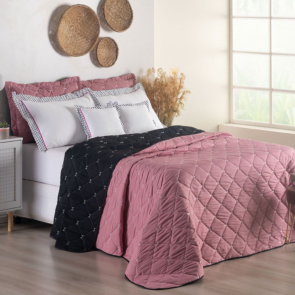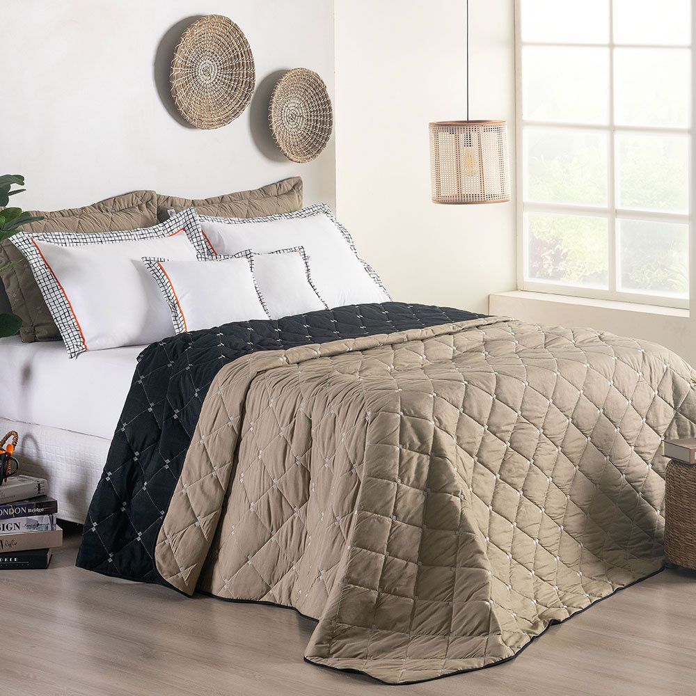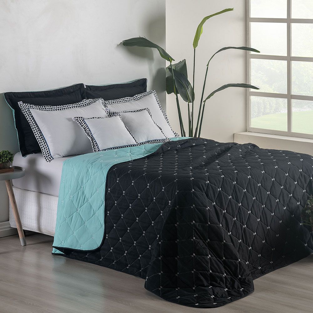 01 Cobre Leito Dupla Face Bordado Casal King: 2,40m x 2,80m