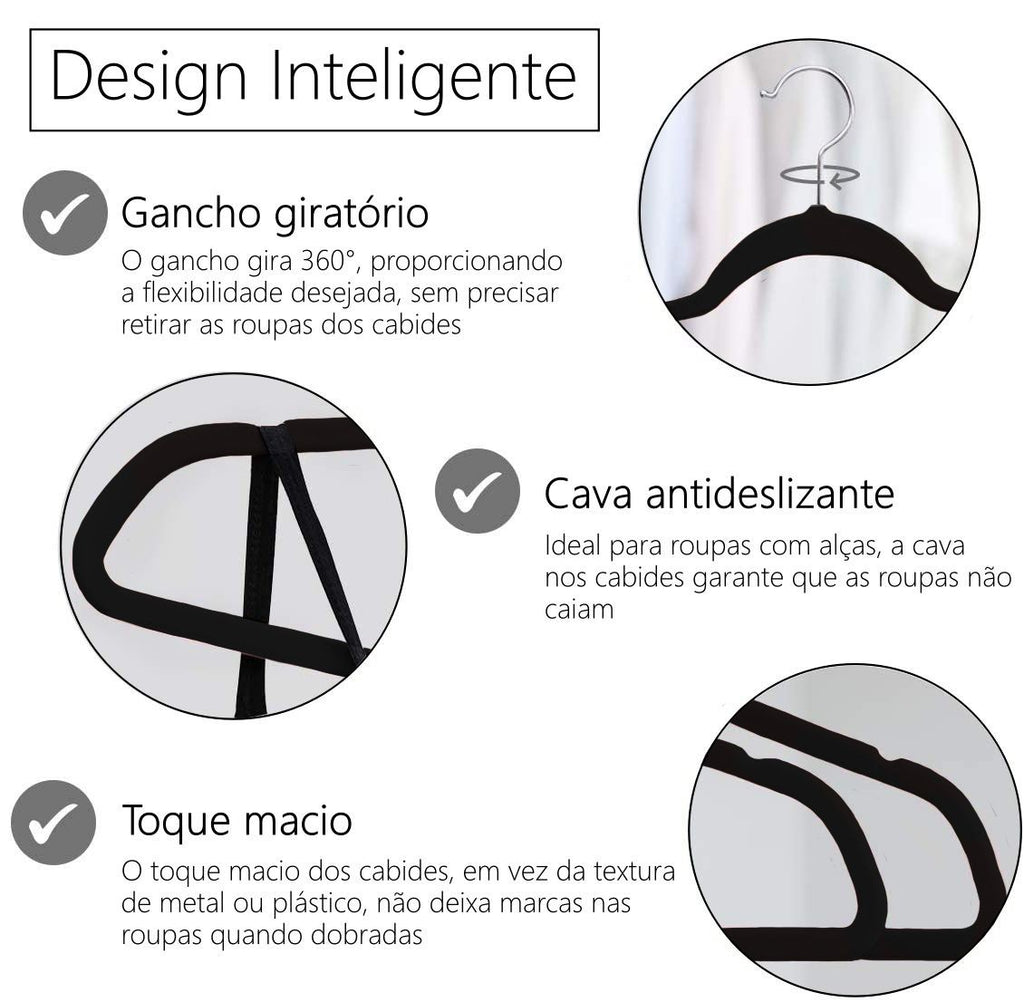 Material do cabide: estrutura de plástico e revestimento em veludo;