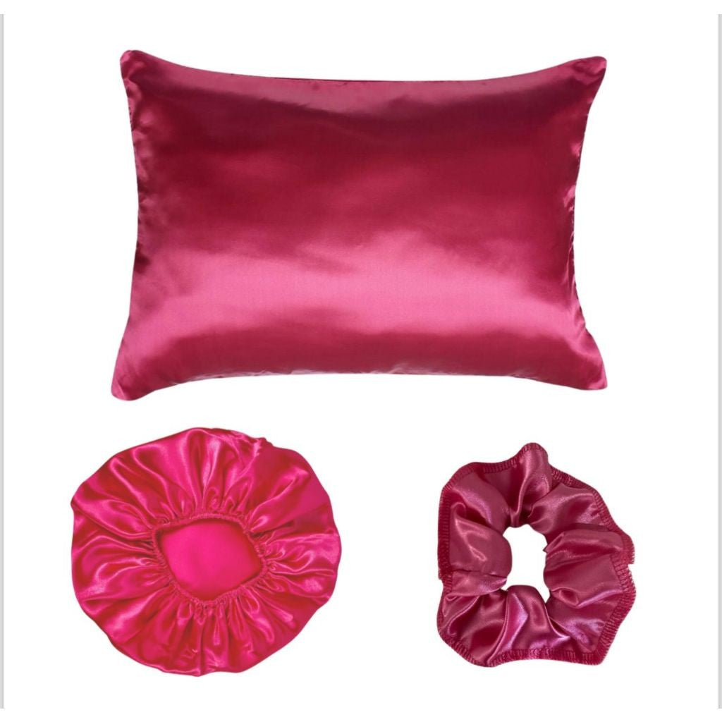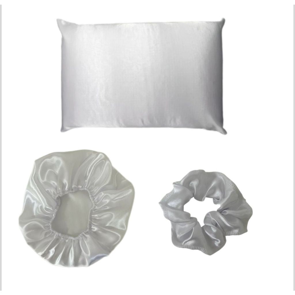 -  Fronha De Cetim Seda + 1Touca + 1 Xuxinhas Cetim  -