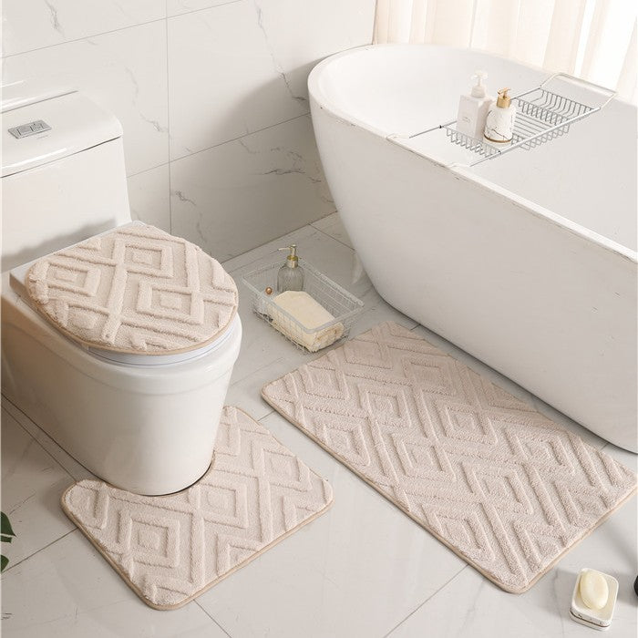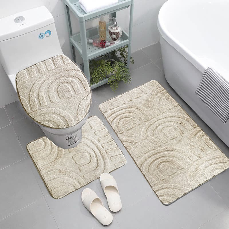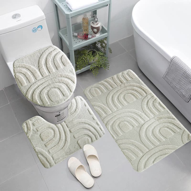 🏡 Jogo de Tapetes para Banheiro 3 Peças Veludo Floral 3D – Conforto, Beleza e Praticidade!