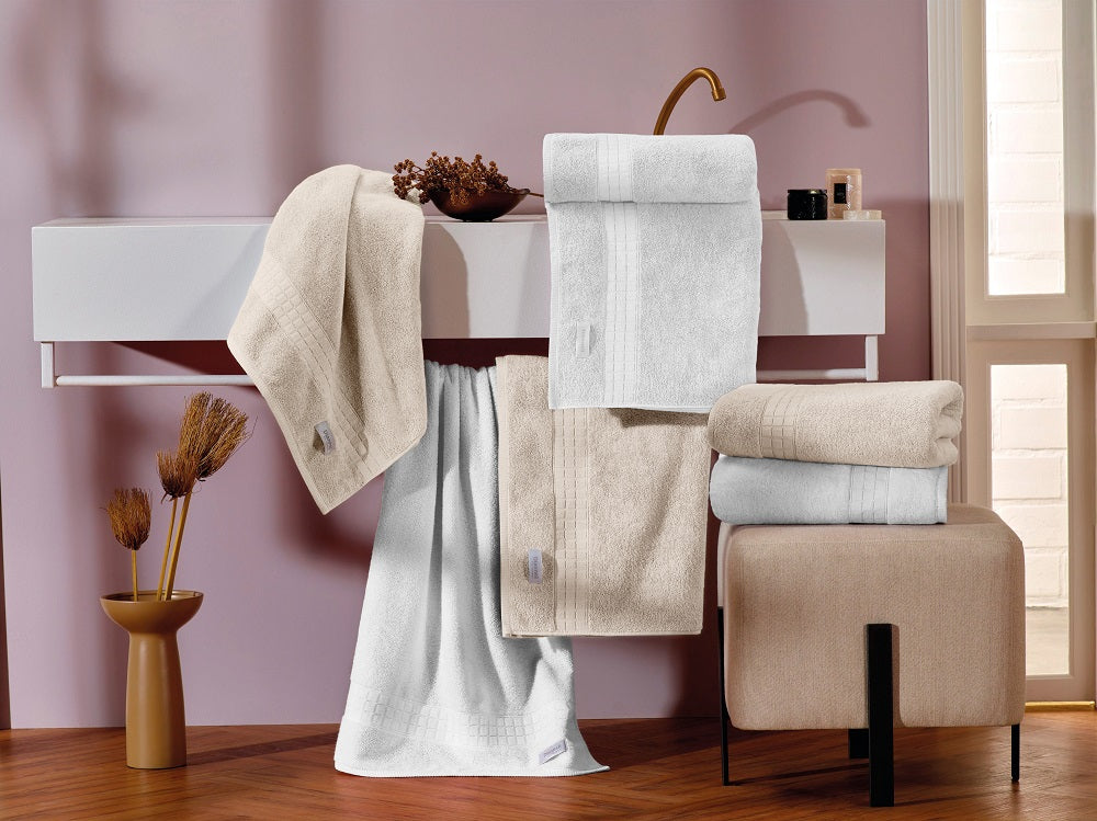 É produzido com fios penteados extra finos e duplos com fibras longas100% algodão. Os Jogos de Banho Class são produzidos em cores neutras,corpo liso e uma linda barra decorativa em estilo clássico.