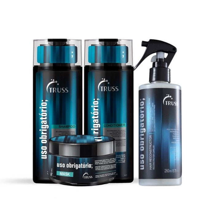 Para uso diário, o Shampoo e Condicionador Uso Obrigatório; proporcionam limpeza suave, condicionamento e tratamento reconstrutor, além de auxiliar na redução de danos em cabelos com química e das agressões térmicas diárias.