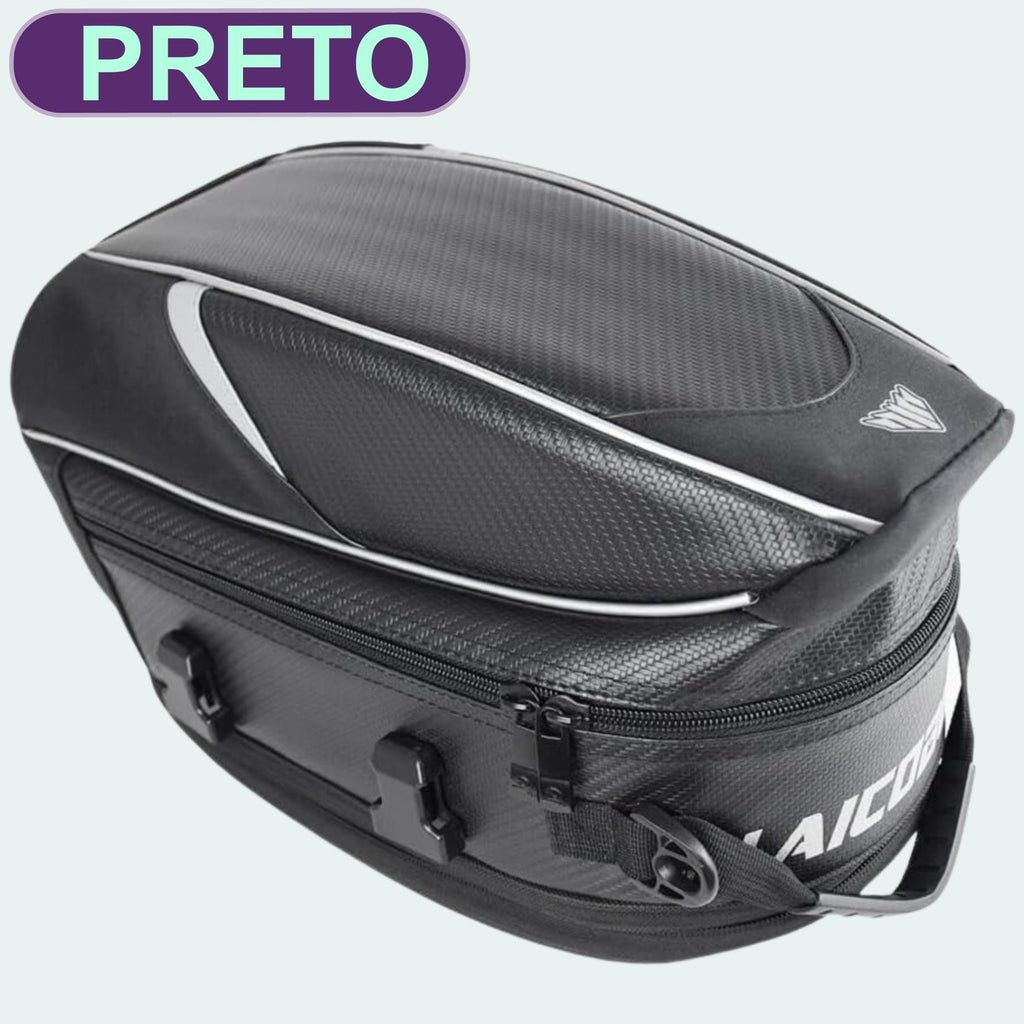 - Compartimento principal espaçoso para acomodar itens essenciais como capacete e roupas