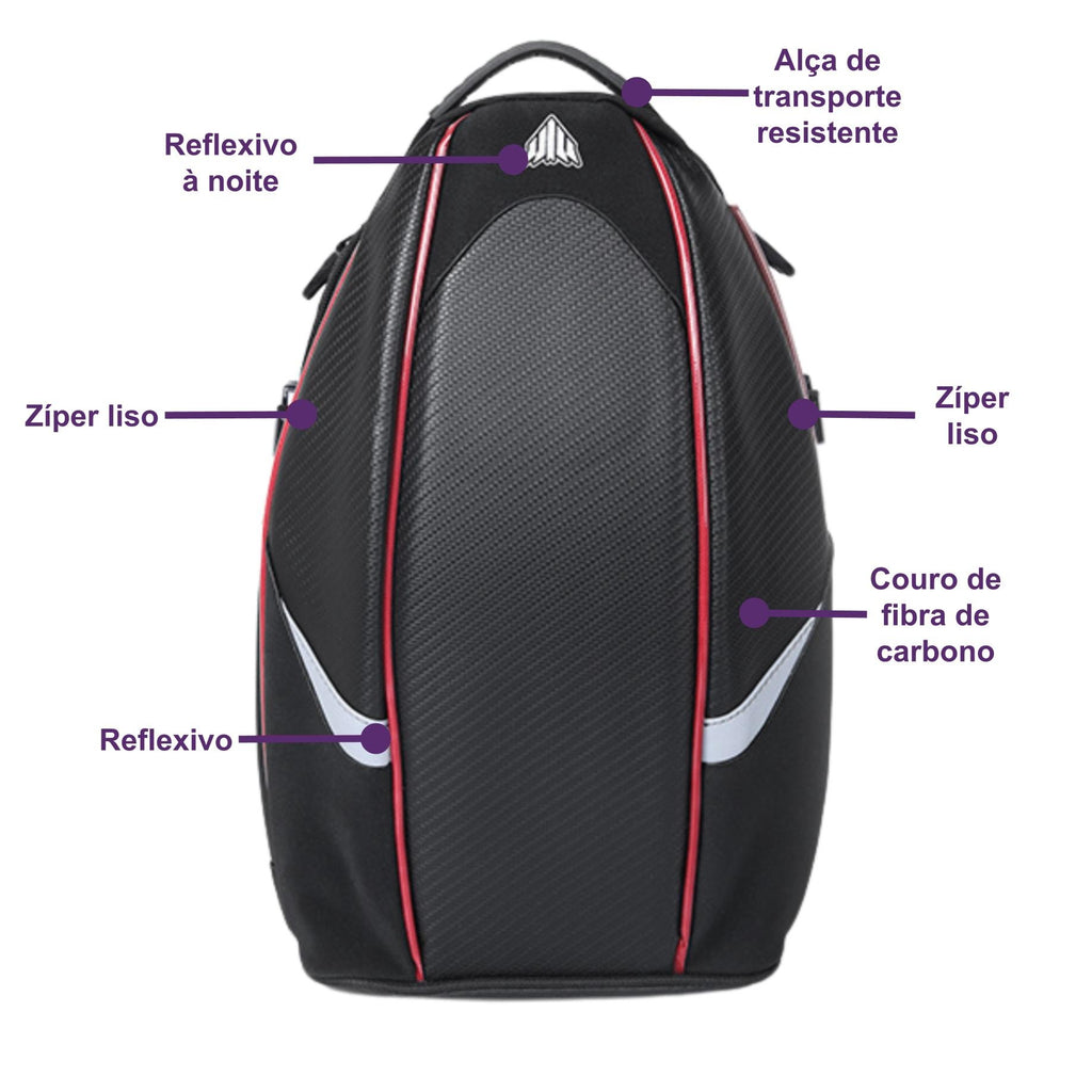 - Material: Fibra de carbono PU e tecido Oxford 210D