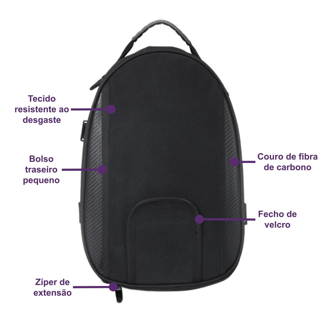 - Feita em material de fibra de carbono PU e tecido Oxford 210D impermeável