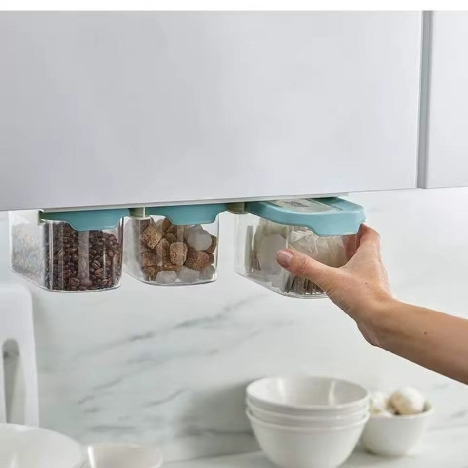 Otimize o espaço da sua cozinha com este conjunto inovador de potes herméticos suspensos, ideal para armazenar grãos, condimentos e alimentos secos com praticidade e higiene.