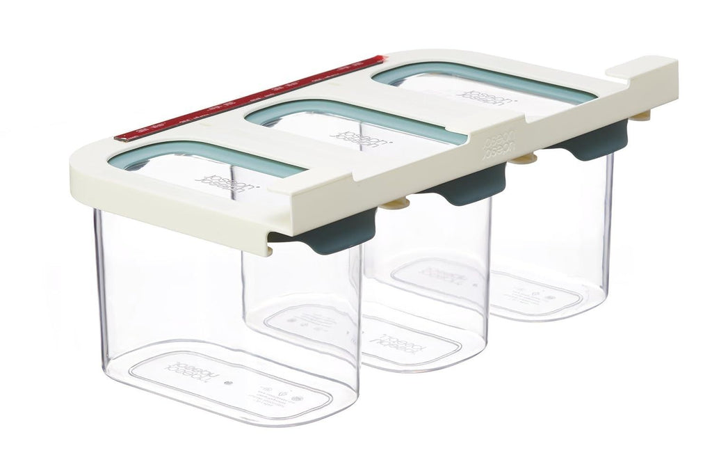 • Fixação segura e prática: Os potes ficam suspensos em um trilho resistente, que é fixado na prateleira por fita dupla-face VHB™ 3M™, garantindo estabilidade sem furar móveis.