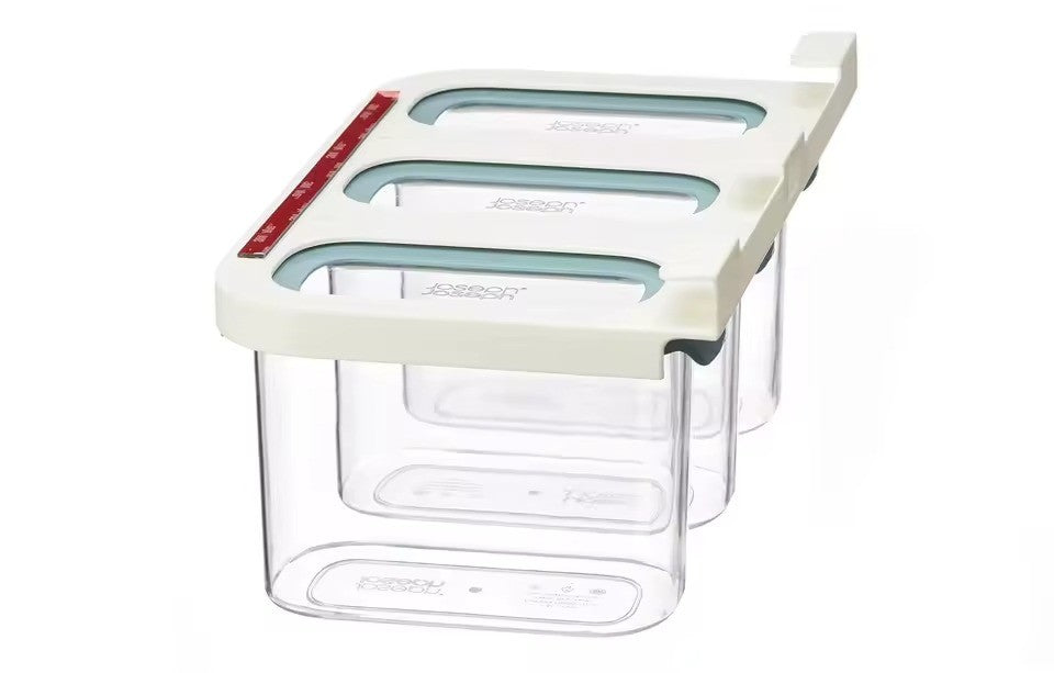 • Conjunto com 3 potes: Cada recipiente possui capacidade de 1,3 litros e é feito em acrílico transparente, facilitando a visualização do conteúdo.