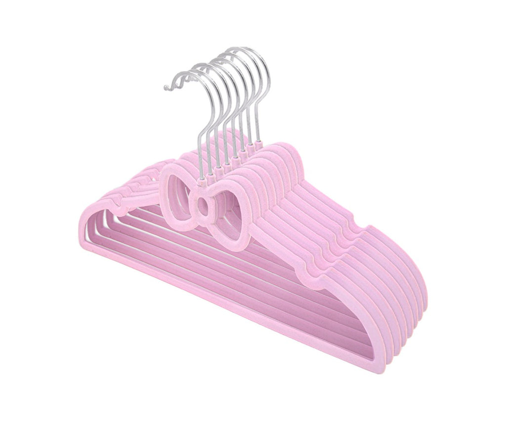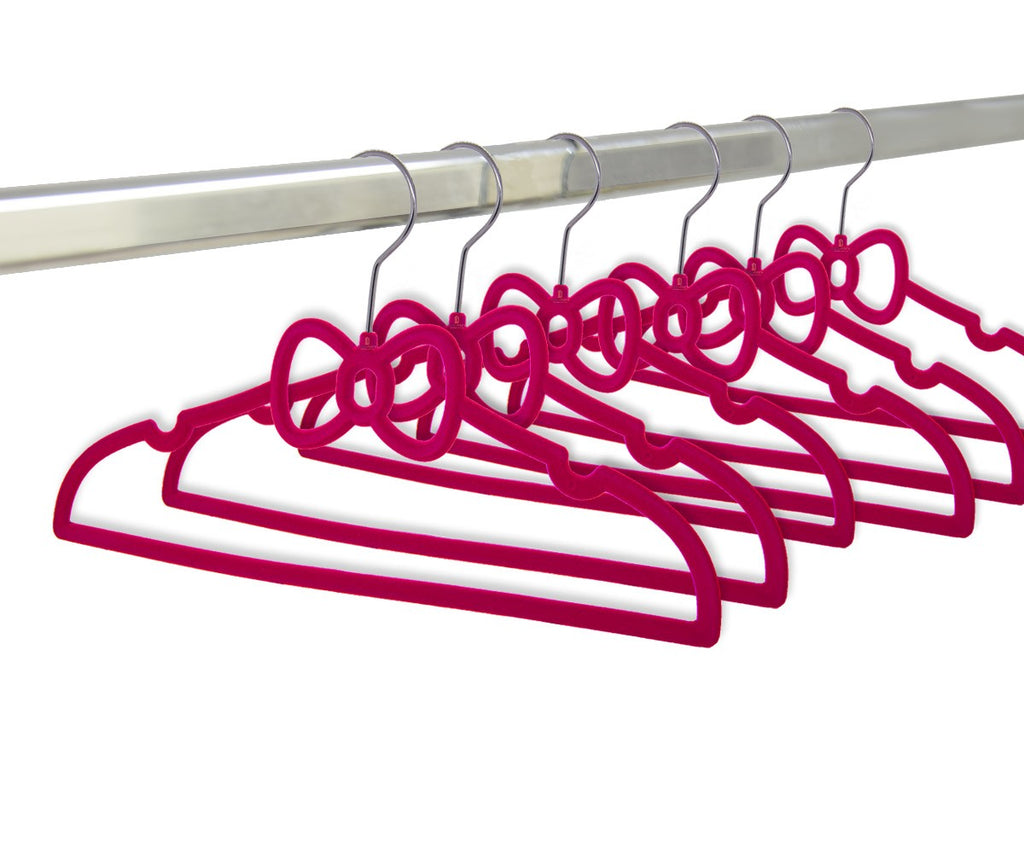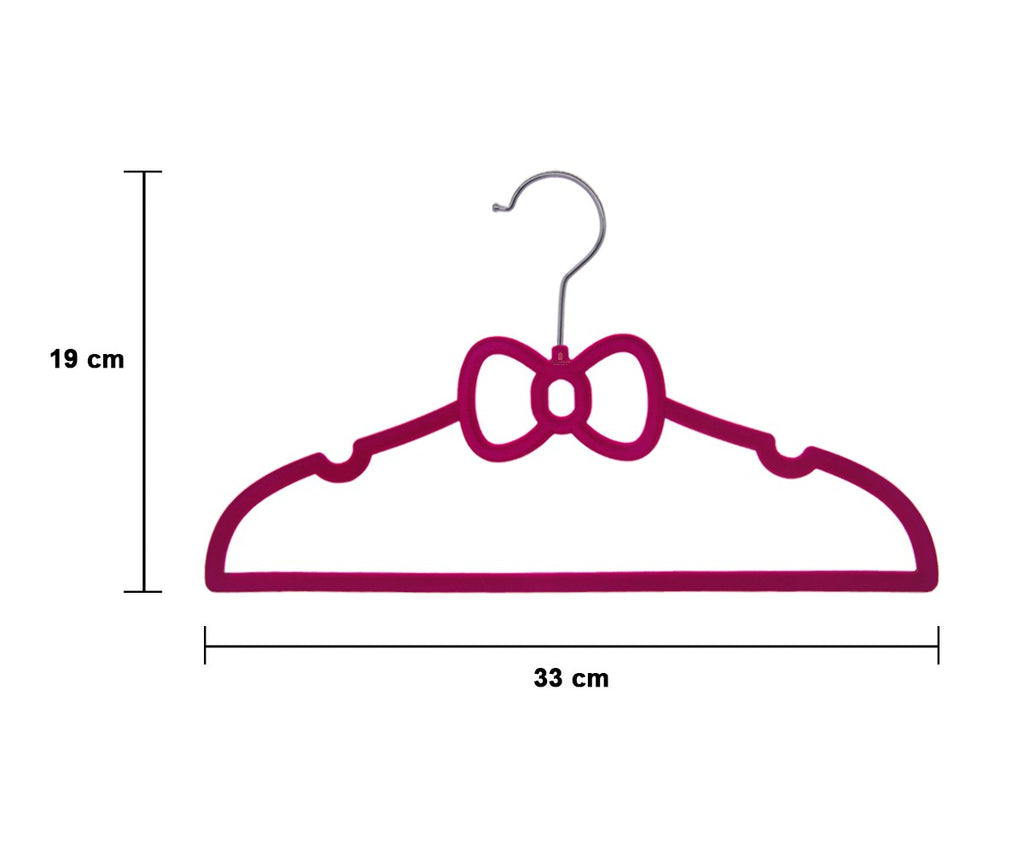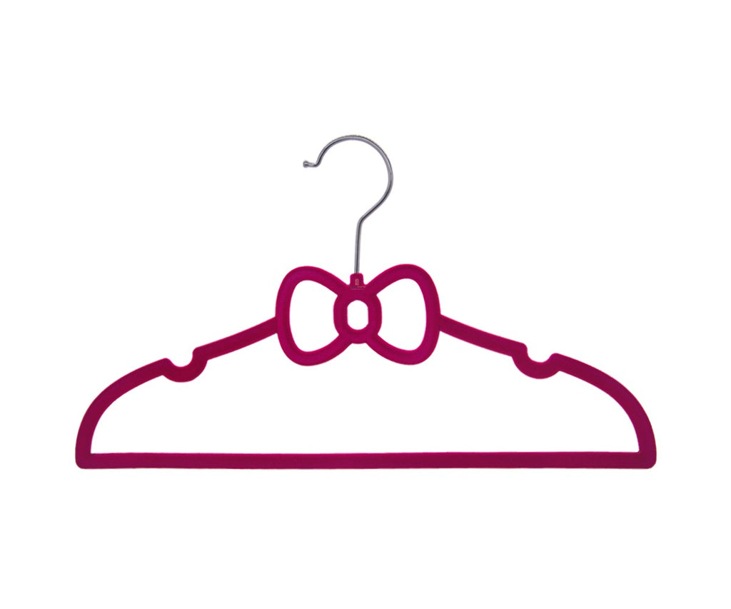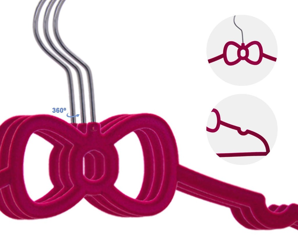 Os cabides infantil de veludo em forma de laço são ideais para acomodar a roupa de seus filhos com estilo.