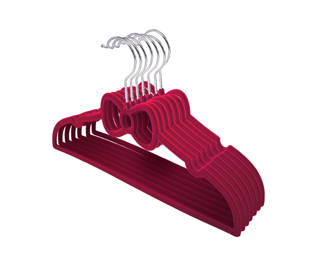 Exclusivamente projetado, os cabides dizem terminou em veludo, é perfeito para roupas não escorreguem. Eles são práticos, versáteis e ajudam a organizar todas as roupas sem guarda de roupas não ocupam espaço.