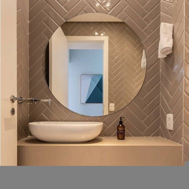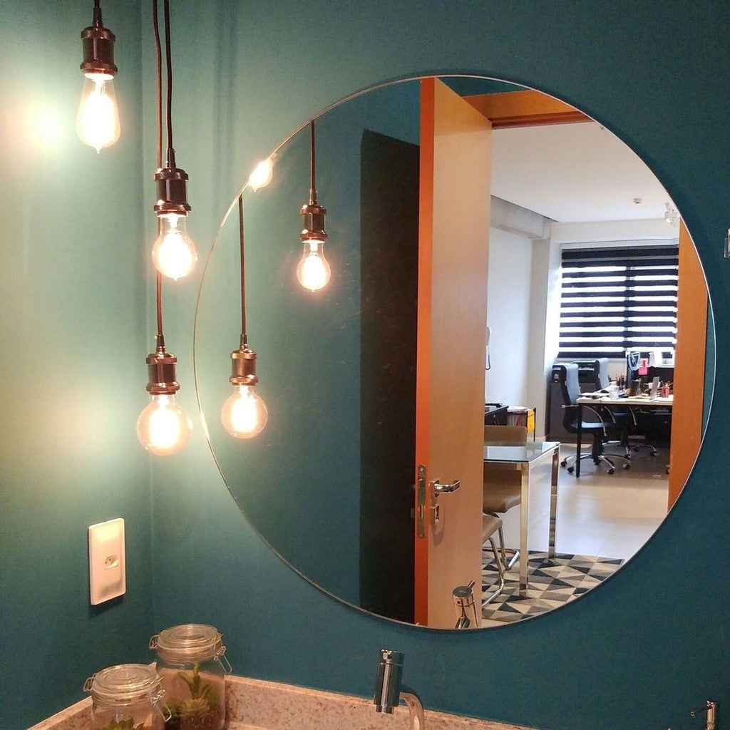 - Espelho de vidro redondo;