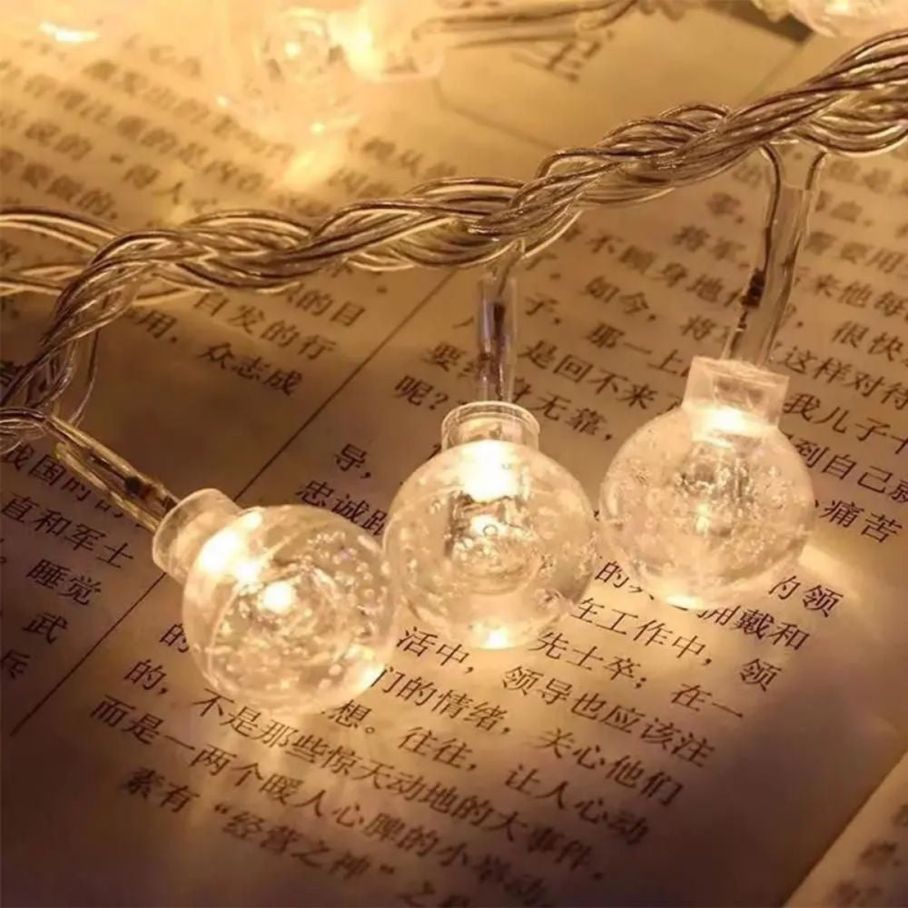 Cordão LED 30 Bolinhas Cristal – Luz Fixa Branco Quente para Decoração