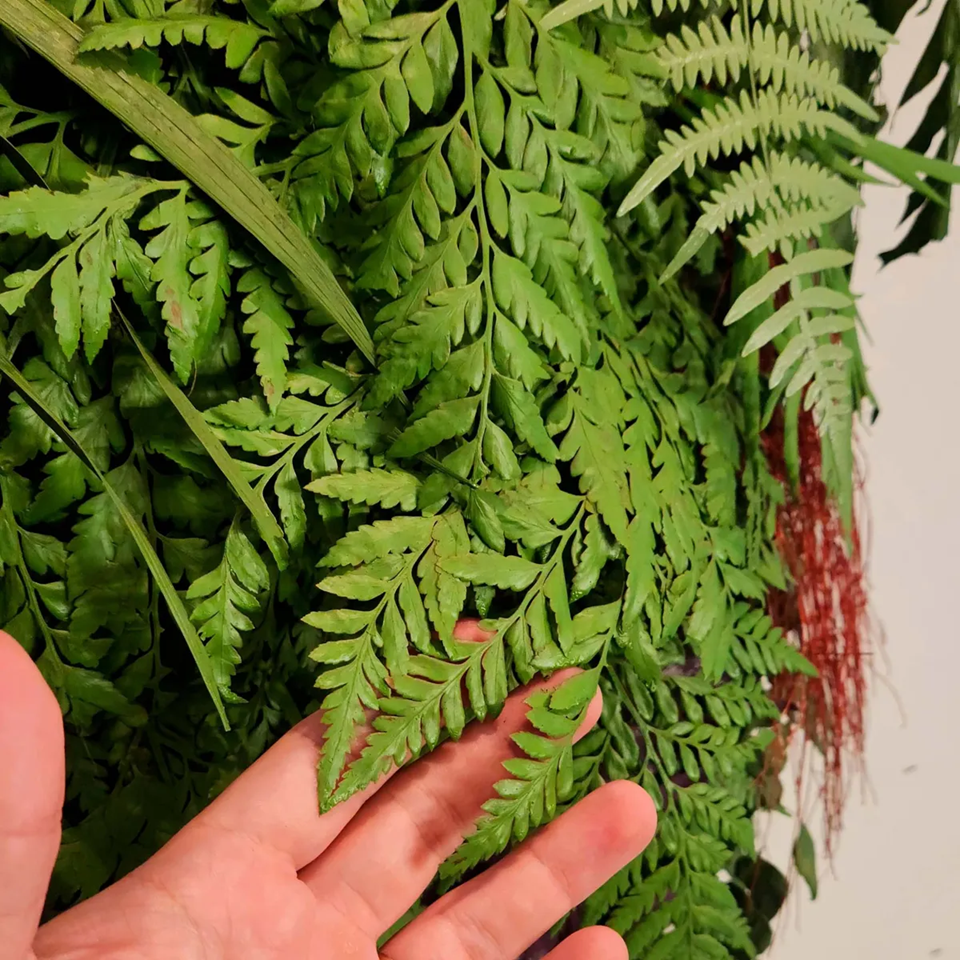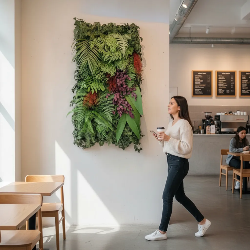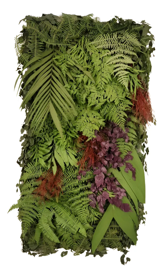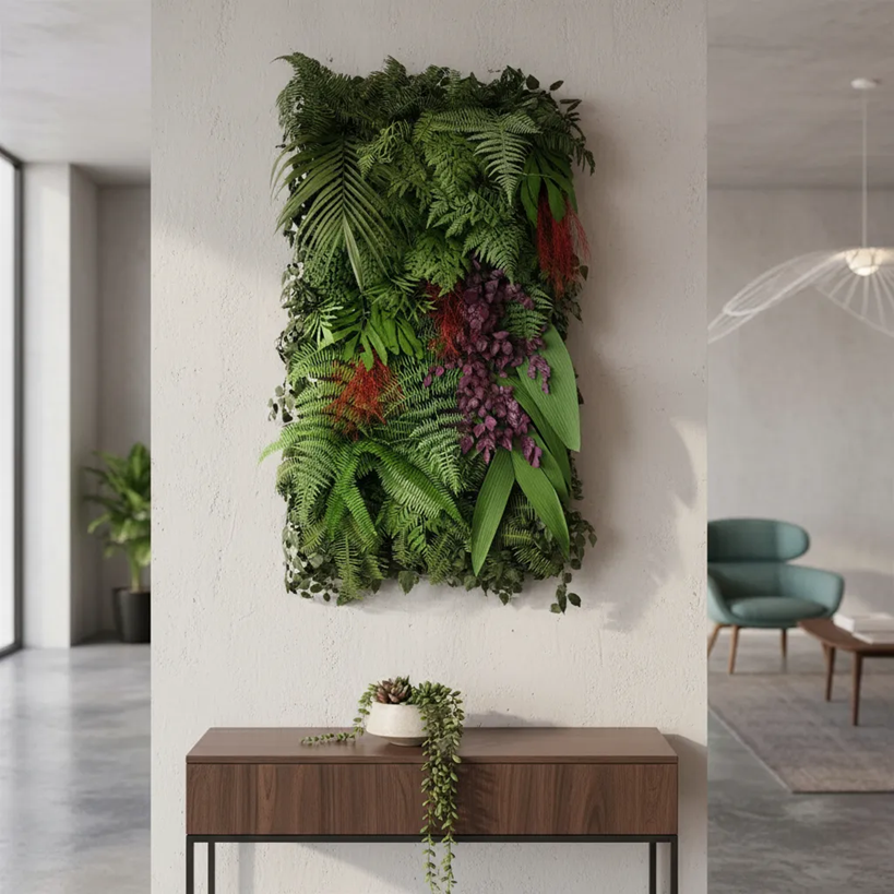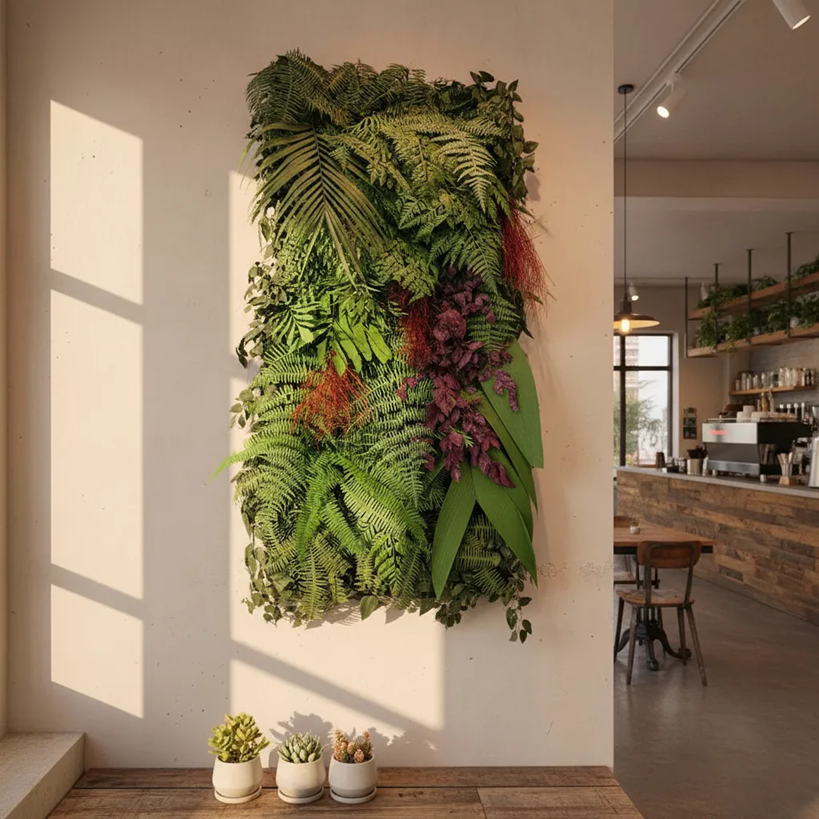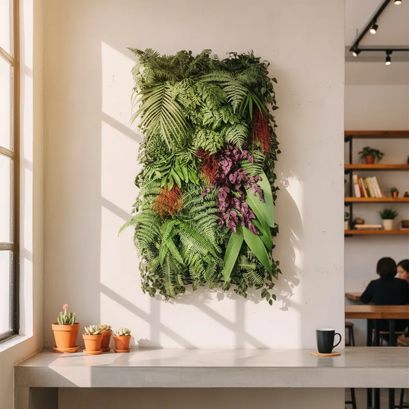 Um painel para quem quer “verde sobre verde” sem virar refém do regador. Produzido pela Floresta de Quintal, este jardim vertical utiliza plantas artificiais realistas— mantendo aparência viva e textura real, sem precisar de sol, irrigação ou aquele lembrete diário do “preciso cuidar das plantas”.