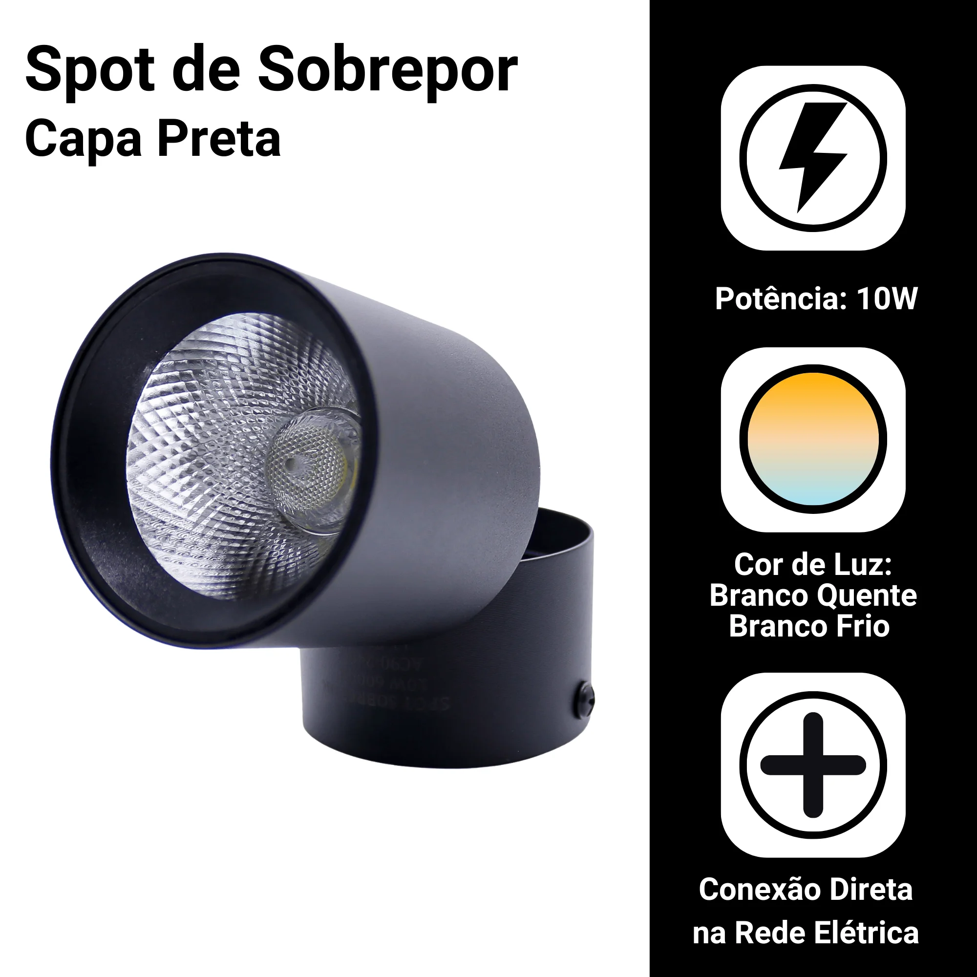 ✅ 1 Spot Refletor LED Sobrepor Direcionável 10W