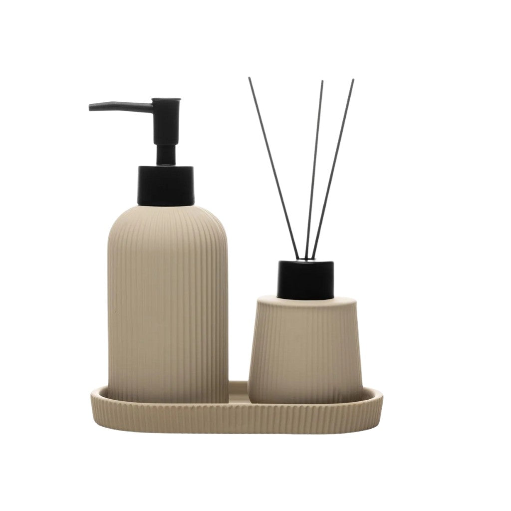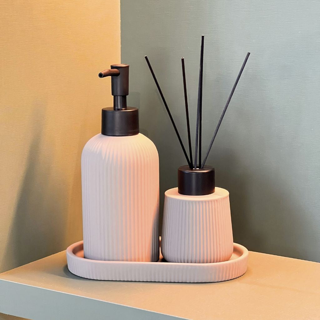 Transforme seu banheiro em um ambiente mais elegante e acolhedor com nosso kit premium em cerâmica com acabamento soft touch. Ideal para quem valoriza cada detalhe da decoração com sofisticação, praticidade e bom gosto.