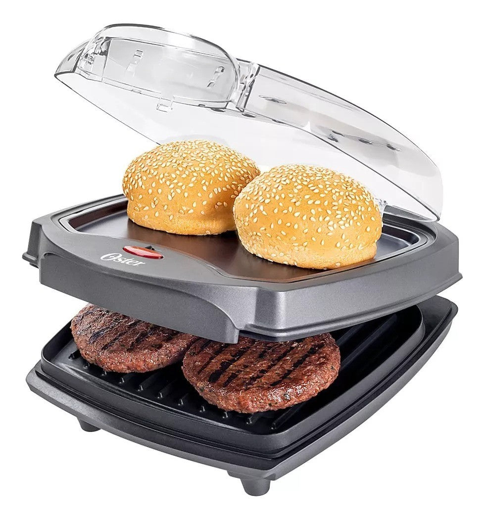 -  O Novo Grill Burguer 2 em 1 Possui Grelha e Chapa Para Preparar Seus Alimentos  -