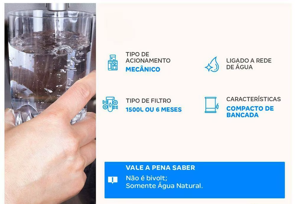Com filtragem Classe A e eficiência bacteriológica, ele elimina as impurezas e ainda retém as bactérias que causam doenças — mais saúde e tranquilidade para sua casa.