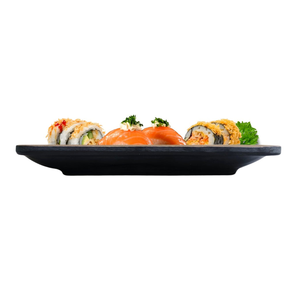 Transforme seus momentos à mesa com a elegância da Travessa Petisqueira Retangular Oriental em Melamina.