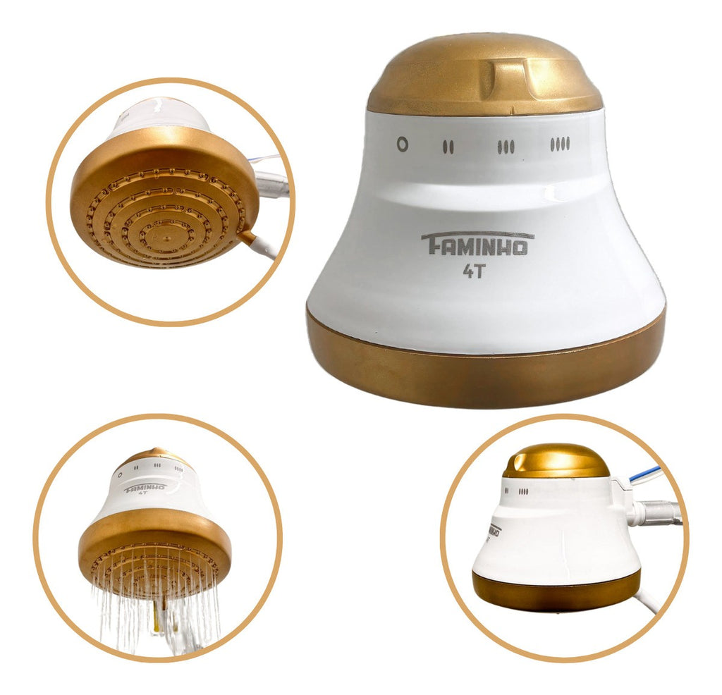 Chuveiro Elétrico Faminho 4t 6.800w 220v Branco c/Dourado Crie Construa