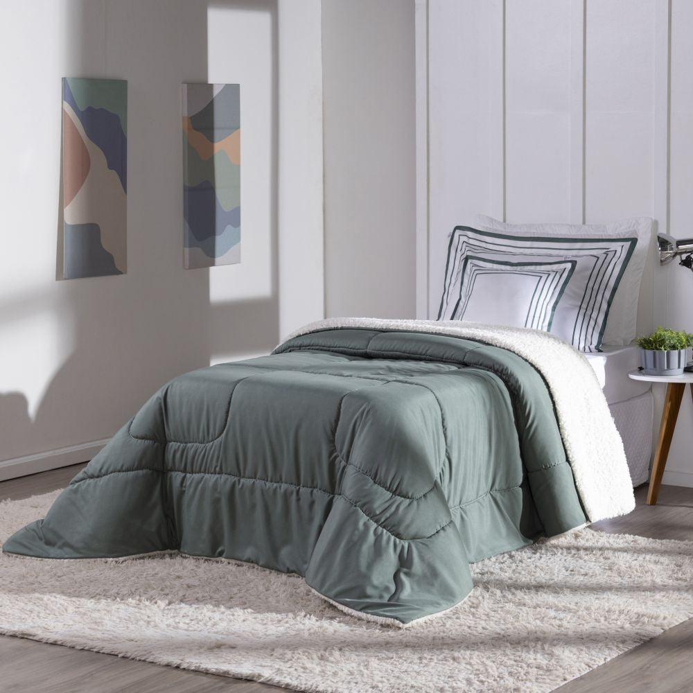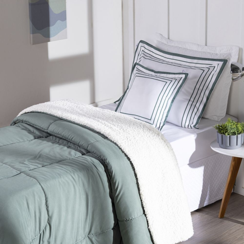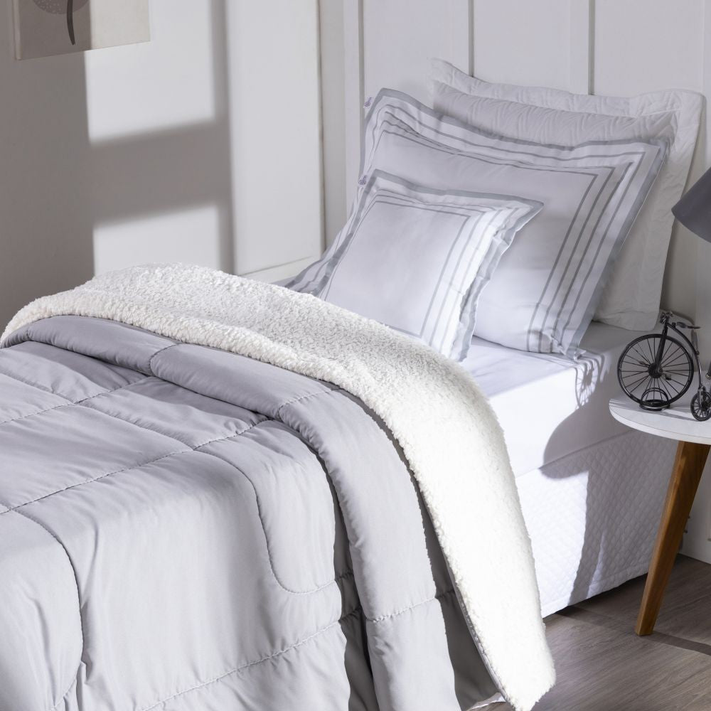 Cobertor e Edredom Dupla Face, a escolha perfeita para unir estilo, conforto e praticidade nas suas noites. Com design dupla face, você pode aproveitar o toque sofisticado do hipercal 400 fios de um lado e a maciez acolhedora da sherpa, que simula a textura da lã de carneiro, do outro.