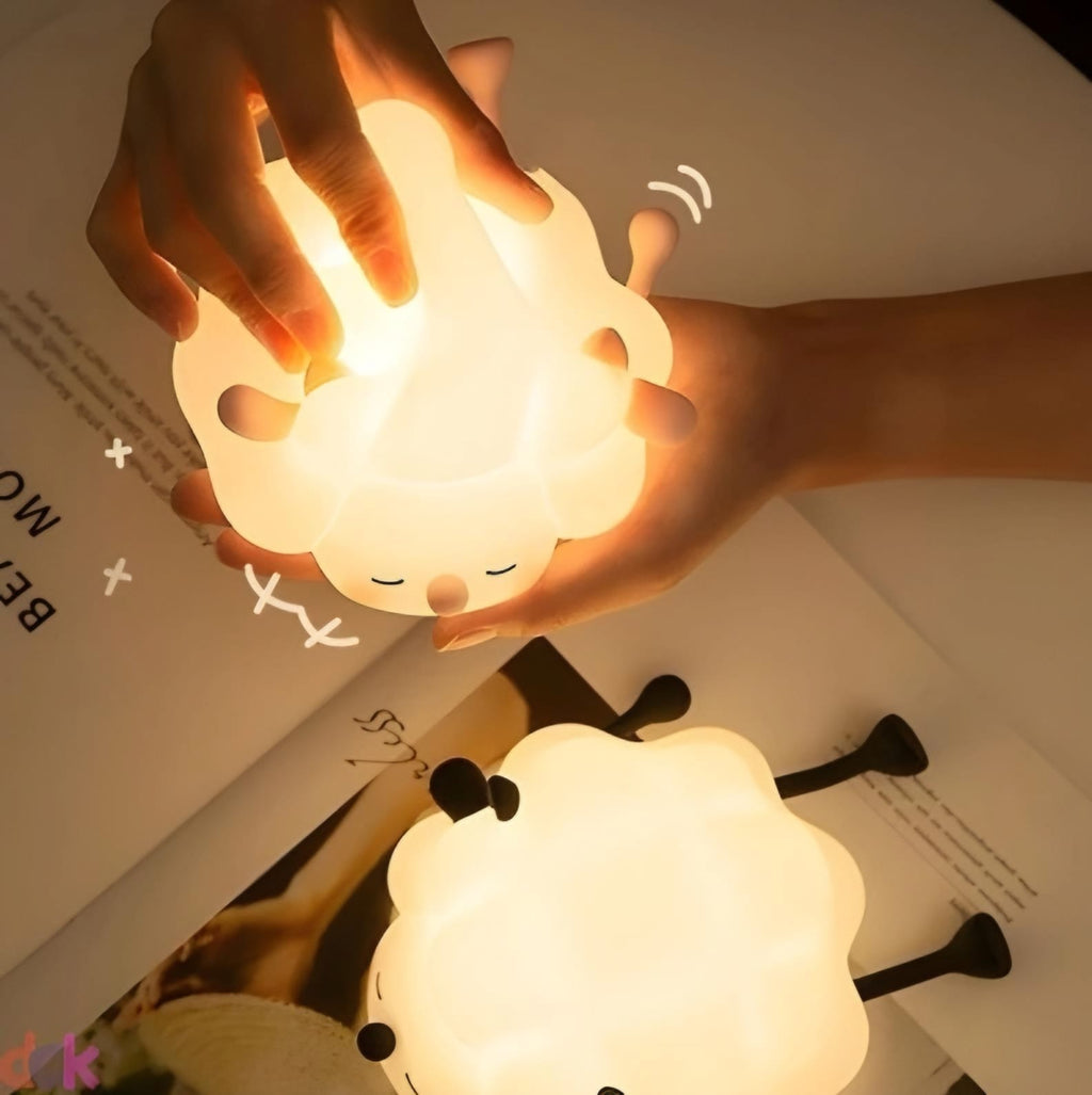 Deixe o momento de dormir mais tranquilo e aconchegante com essa linda luminária siliconada em formato de ovelhinha. Feita com materiais macios e seguros, é o item perfeito para decorar o quarto dos pequenos!
