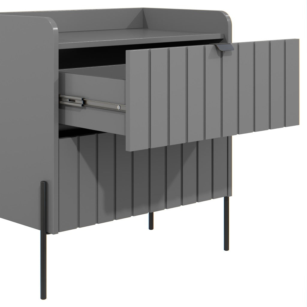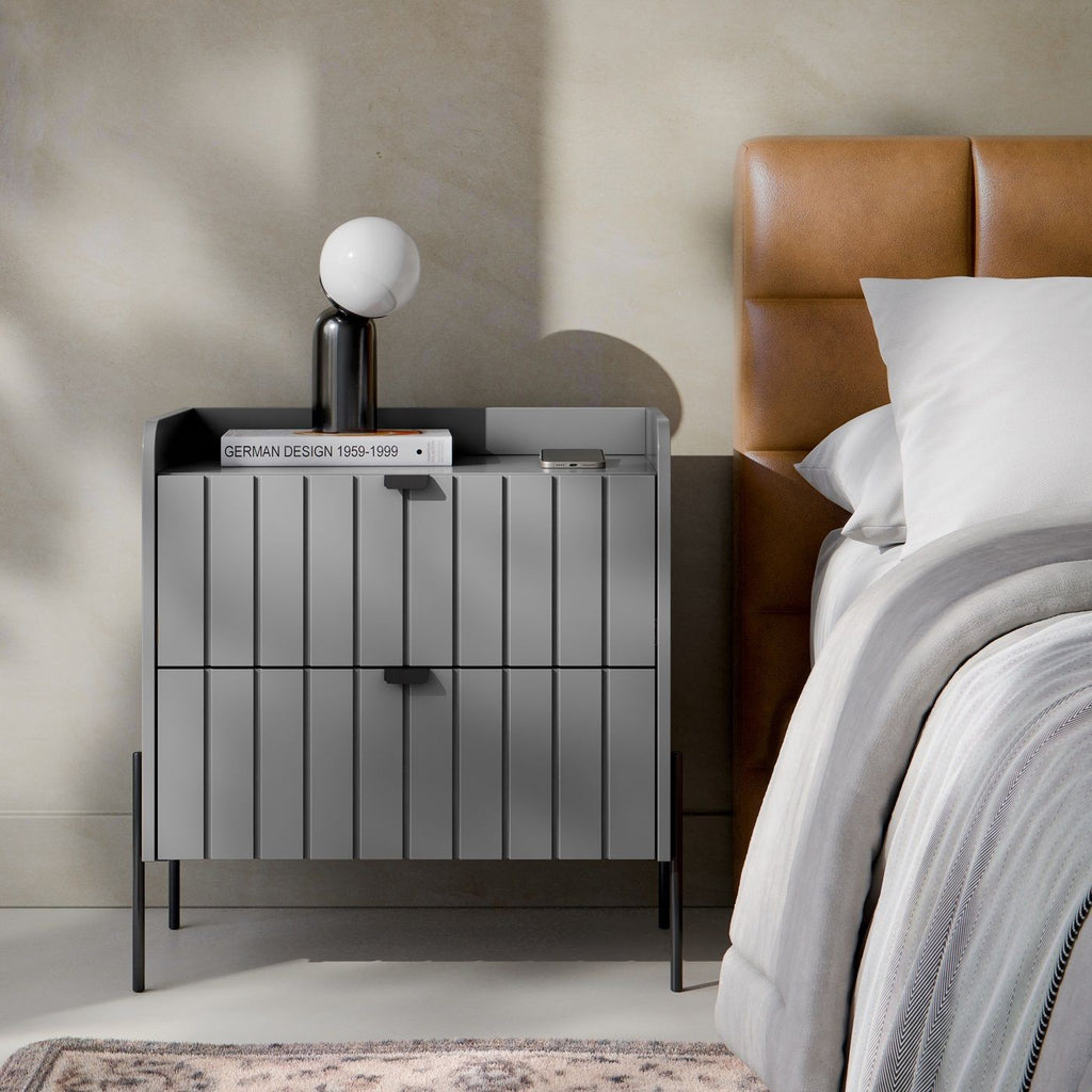 Desenvolvemos este móvel para agregar na decoração do seu ambiente, fazendo que seu espaço fique ainda mais moderno e elegante. Nossa mesa de cabeceira tem duas gavetas, pés de ferro e um lindo design no estilo industrial, para que você possa organizar e guardar os seus objetos. Este móvel vai aprimorar ainda mais o seu ambiente!