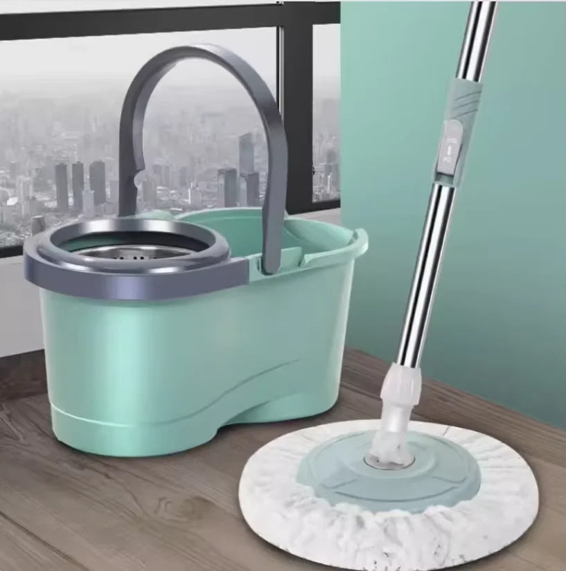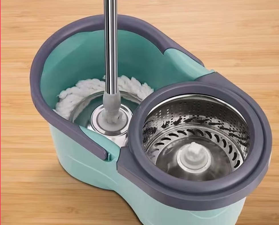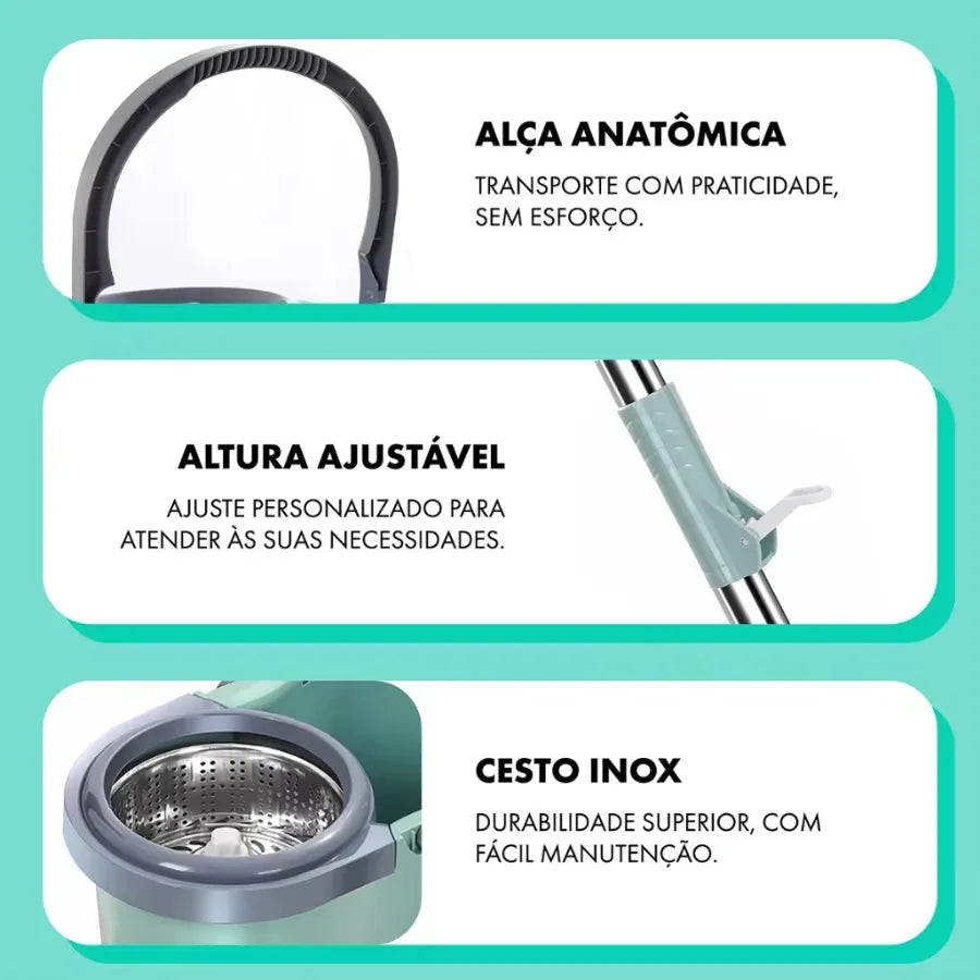 Balde Mop Esfregão Giratório 360 de Limpeza 12 Litros Com Cesto Inox Cabo 1,10 Metros