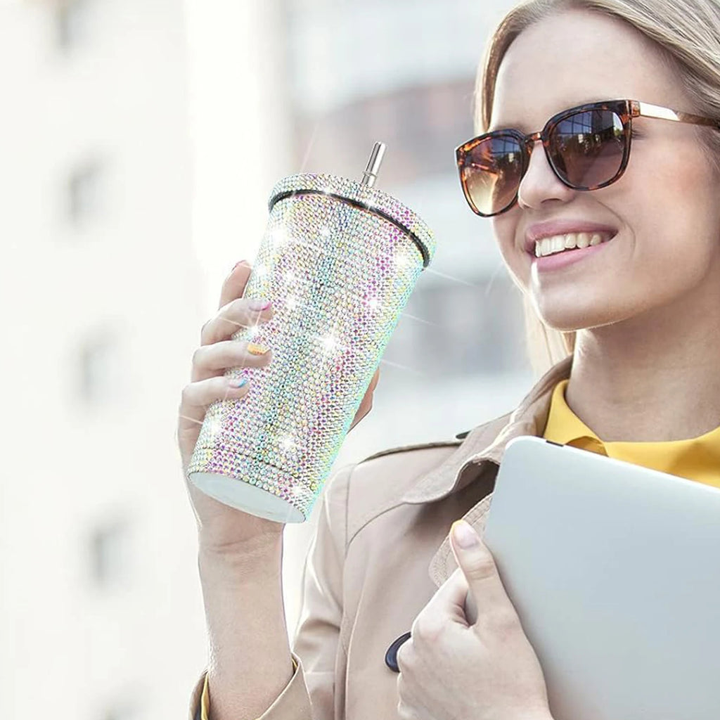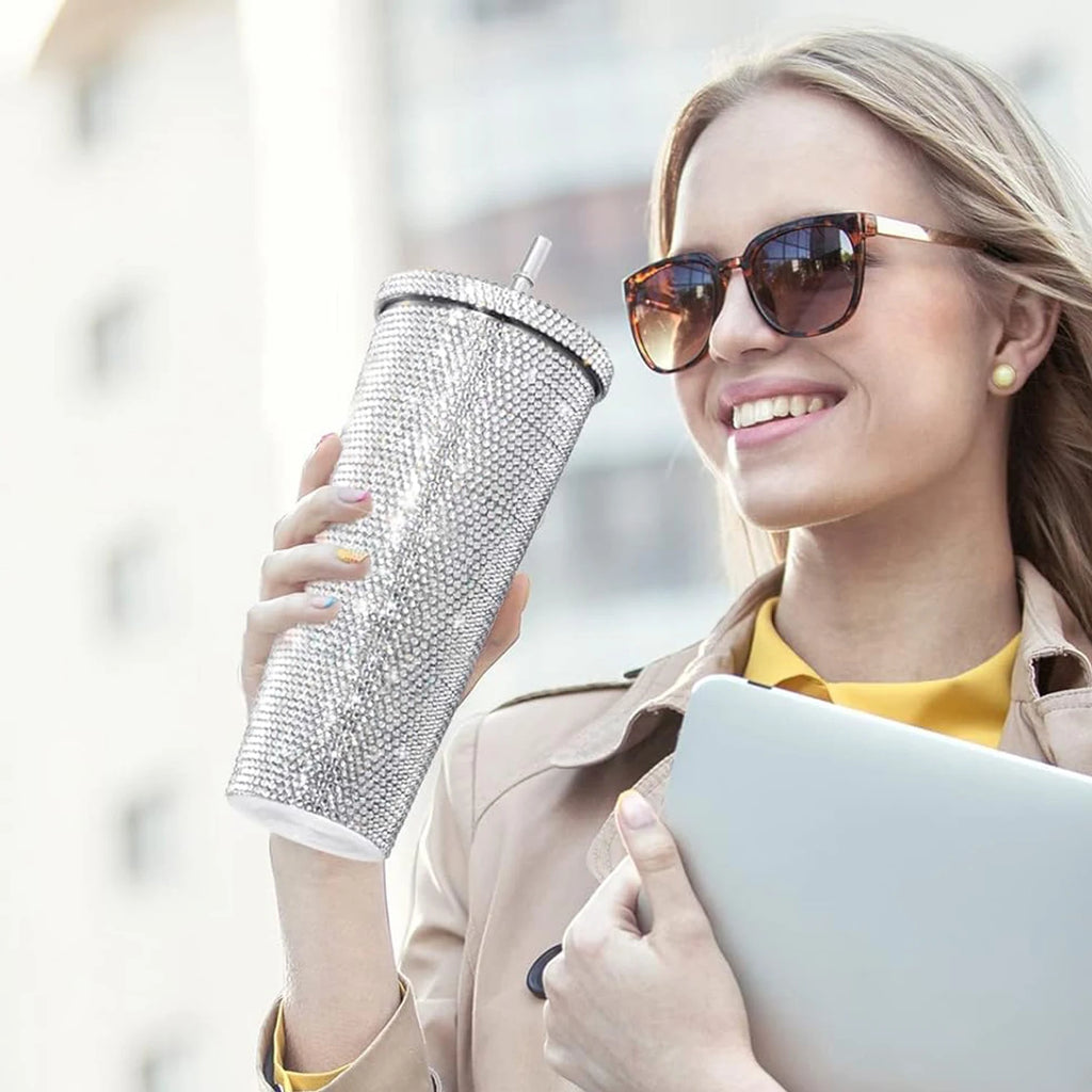 Garrafa de água prática e brilhante com strass para presente de Natal ou aniversário.
