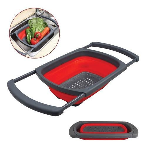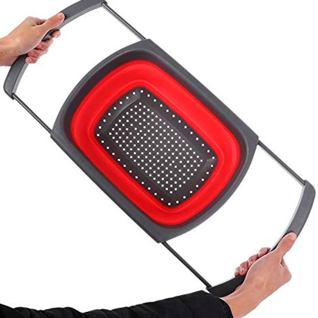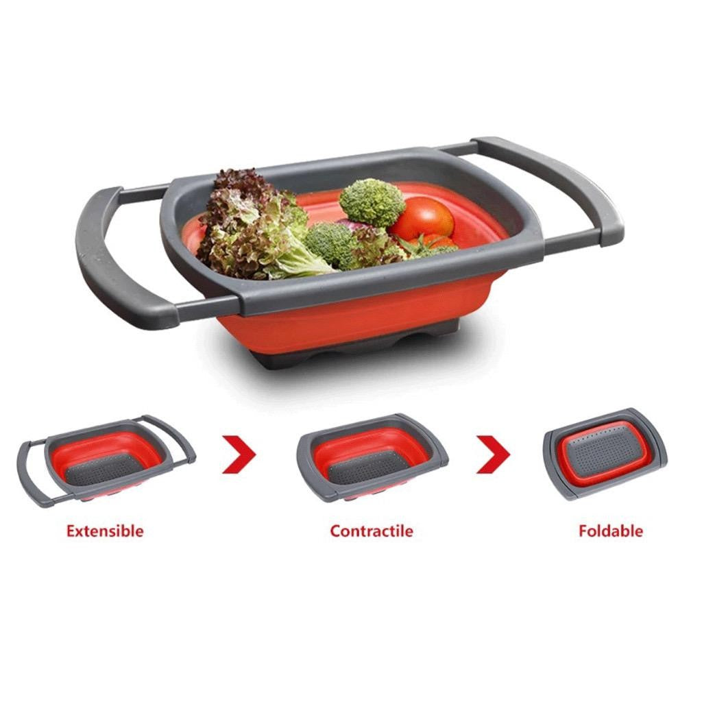 Escorredor de Silicone Retrátil com Alças - Para a Pia - Lavagem de Legumes, Verduras, Descongelar Carnes, Escorrer Macarrão e Massas Quentes - MultiUso!!
