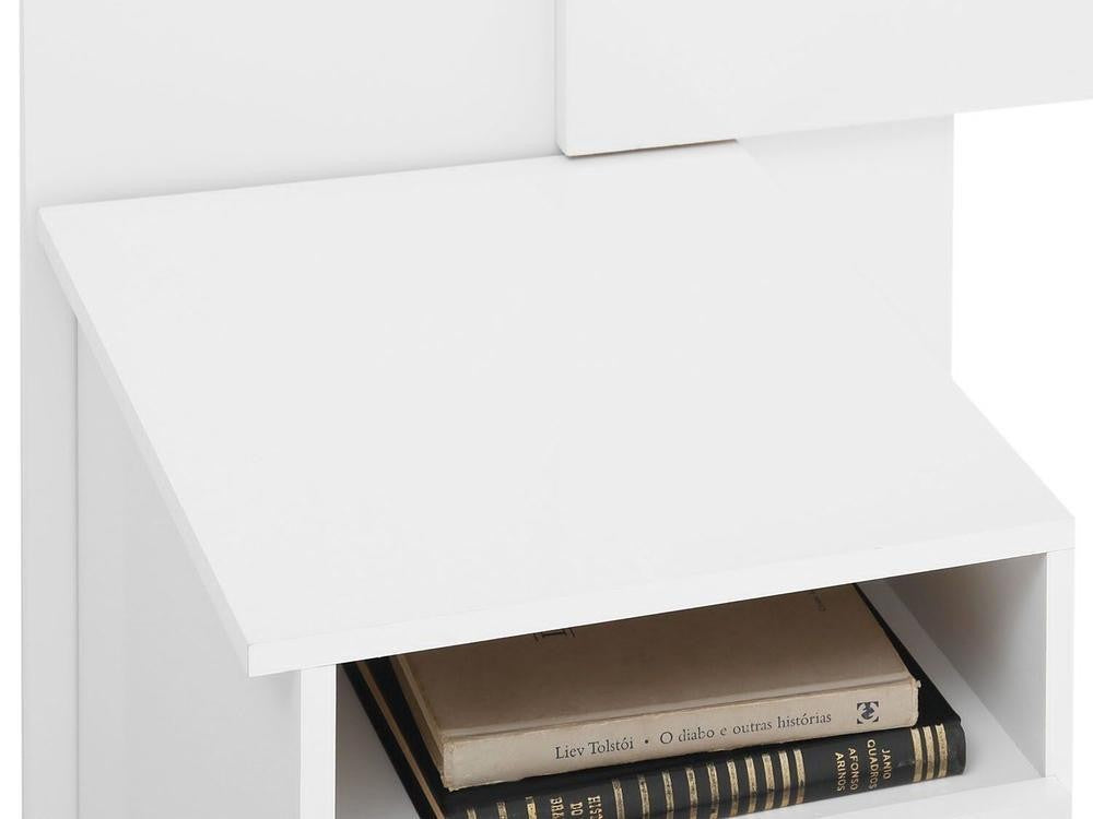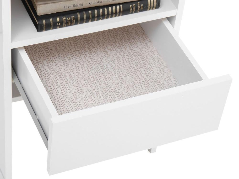 Produzida em chapas 100% MDP, material ecologicamente correto e resistente, tem acabamento em pintura UV e verniz fosco, muito resistente, que dão maior destaque a cor branca e conservam a beleza do produto por muito mais tempo.