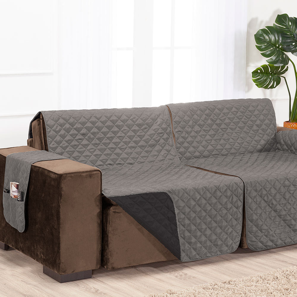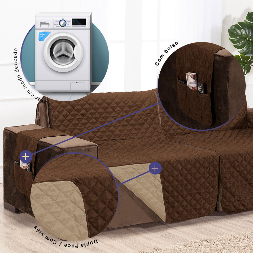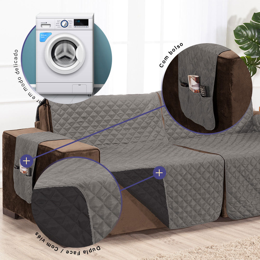 Com matelado em costura, formando desenhos de losangos, e podendo ser utilizado dos dois lados da mesma forma, sendo que cada lado tem uma cor diferente, para você poder variar o visual do ambiente, o protetor é a opção perfeita para esse modelo de sofá