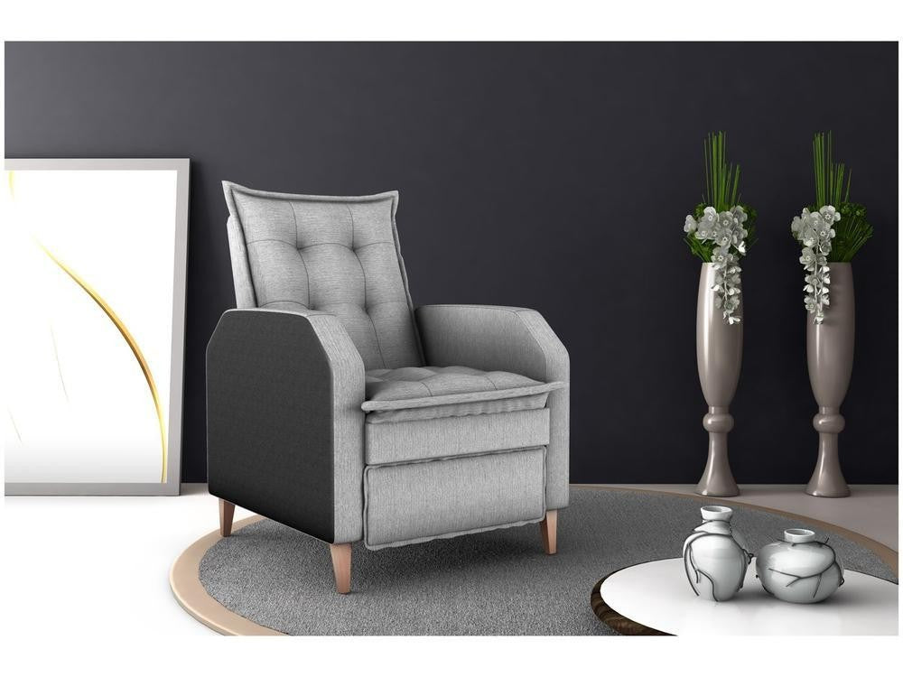 A Poltrona reclinável possui um design super moderno que valoriza seu ambiente, ideal para salas de estar ou quarto. Sua estrutura é em madeira de reflorestamento e acabamento em material sintético de toque suave na cor preto e cinza, conta com 1 posição, perfeito para completar com os outros móveis da sua casa.