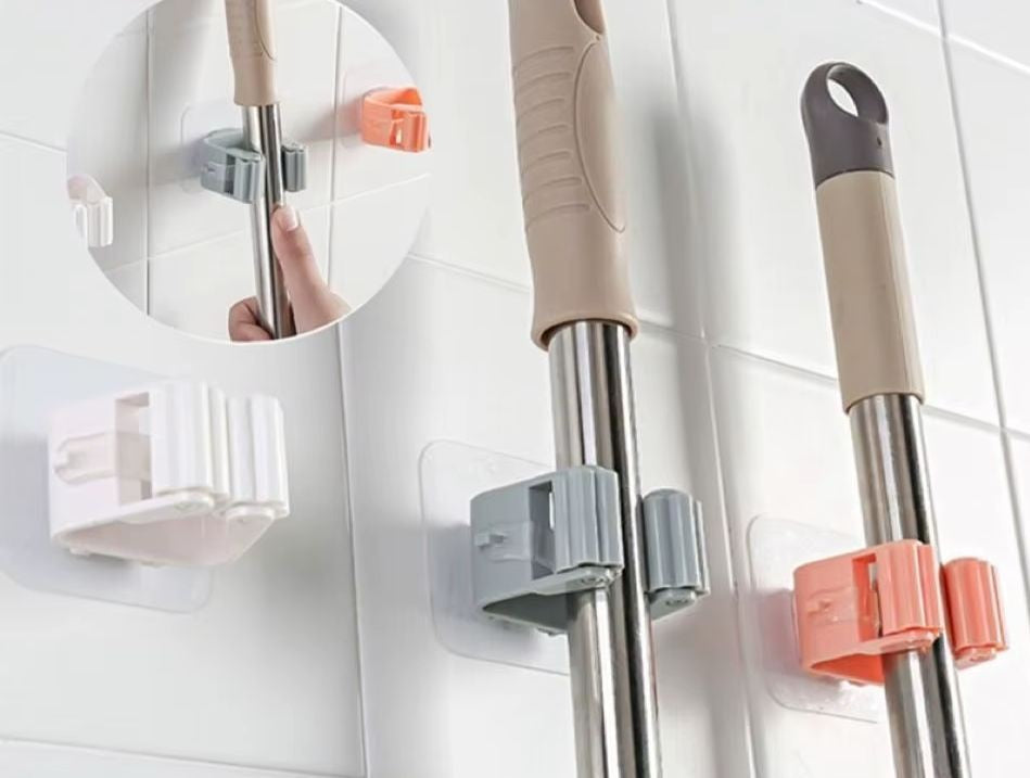 Composto por três suportes com gancho adesivo, este kit permite que você organize vassouras, rodos e outros utensílios de limpeza sem precisar furar a parede ou instalar suportes permanentes.