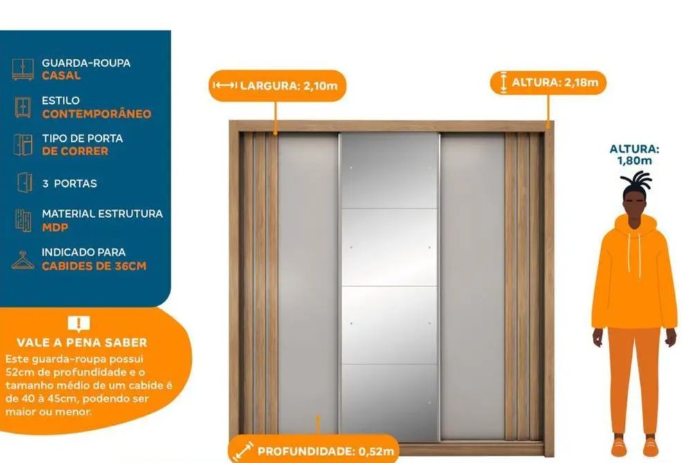 Dimensões (A x L x P): 218 cm x 210 cm x 52 cm