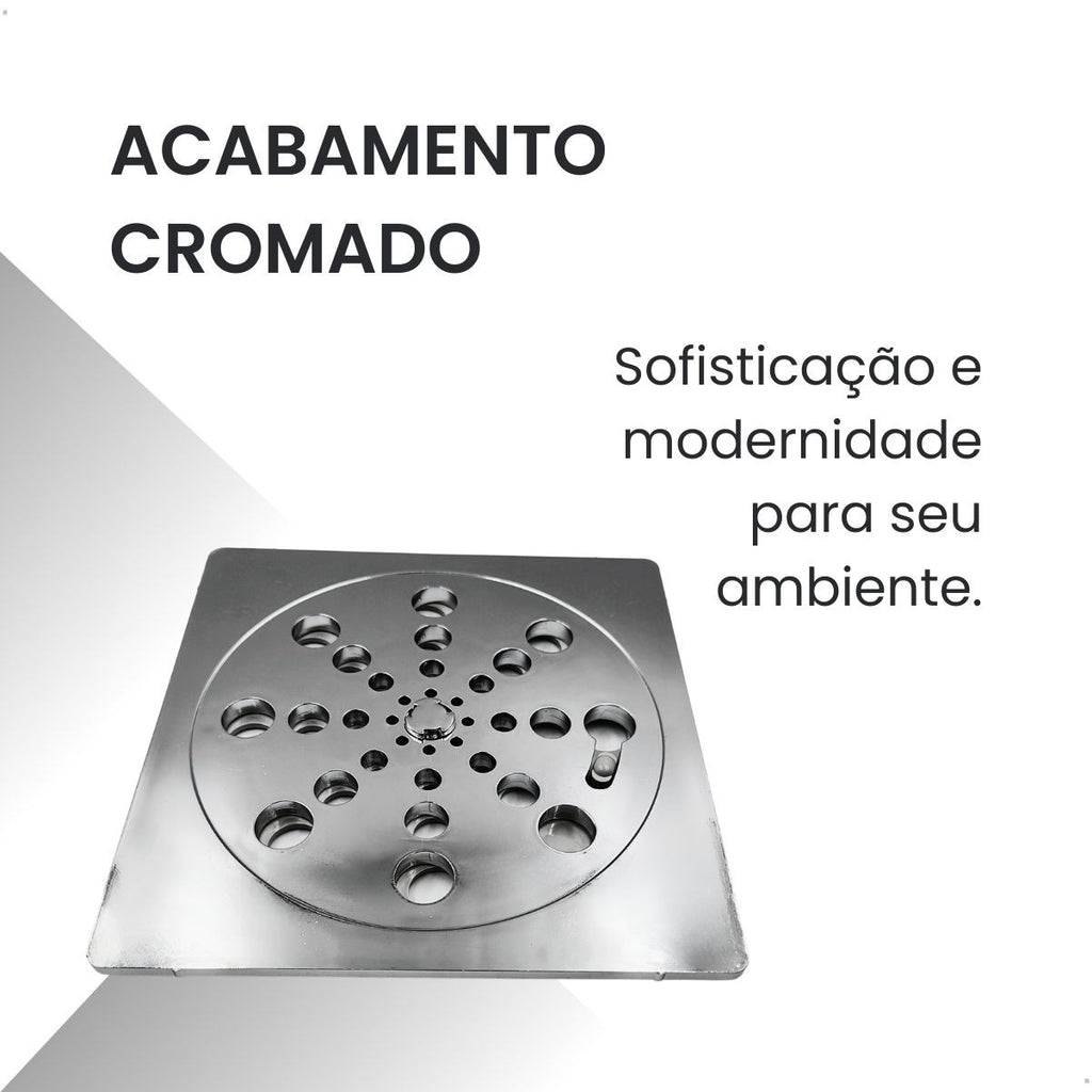 Fabricada em ABS de alta resistência, essa grelha combina durabilidade, leveza e resistência à umidade, sendo ideal para banheiros, cozinhas, áreas de serviço e espaços externos. Seu acabamento cromado garante um visual moderno e sofisticado, combinando perfeitamente com diferentes estilos de ambiente.