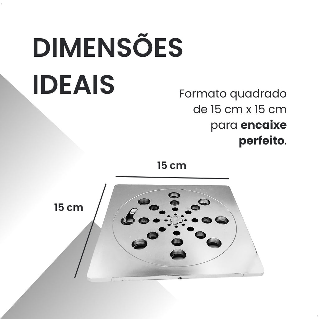 Dimensões ideais – tamanho padrão 15x15 cm, encaixe perfeito em ralos convencionais.